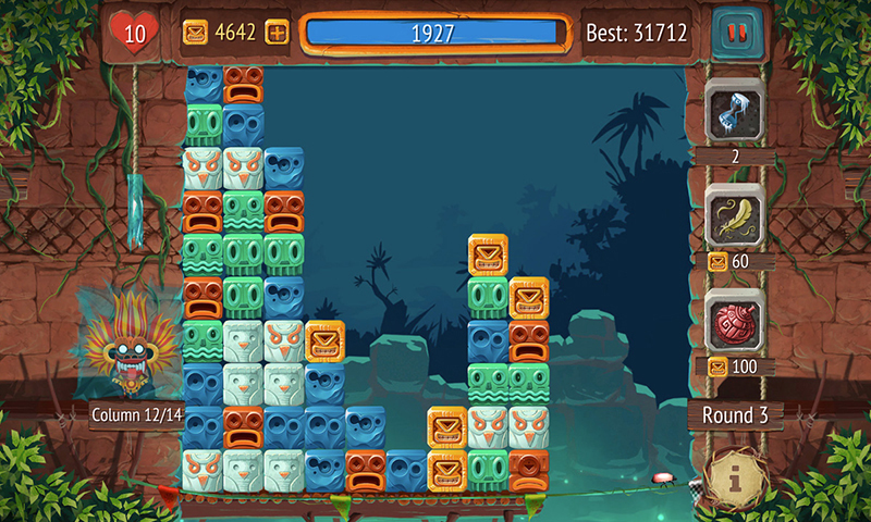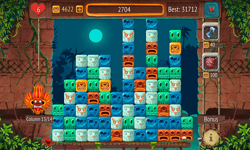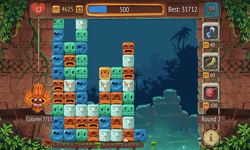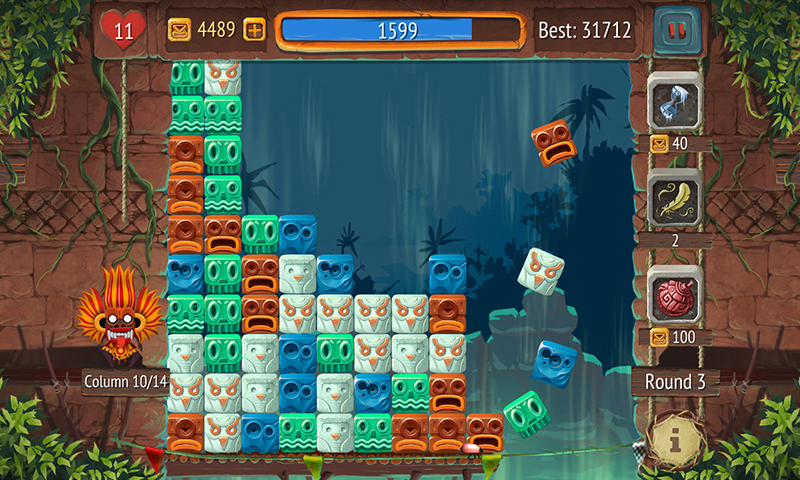 Welcome to the puzzle jungle! Ready to fight in a match-2 puzzle battle against the evil shaman? Gain a gigantic highscore by matching & collecting stacks of blocks with the same color. The evil shaman throws more and more blocks to you, the drum speed gets faster and more intensive, don't let any blocks fall into the abyss until the last drum beat. • Endless addictive gameplay • Feel the sounds adapting to the gameplay • Daily tasks to win great prices • 3 helpful powerups like time freeze
